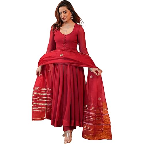 632 reviews for GoSriKi Women’s Rayon Blend Anarkali Solid Kurta with Pant & Dupatta