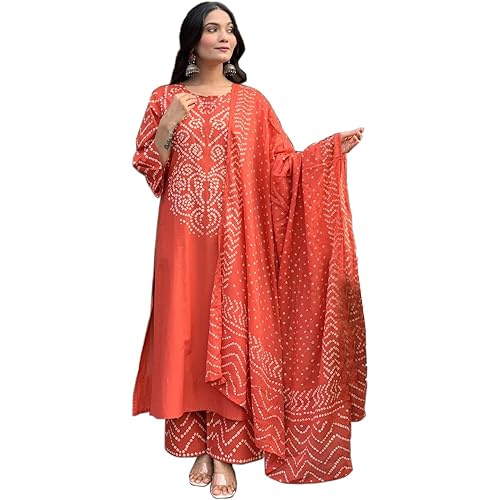 365294 reviews for GoSriKi Women’s Viscose Rayon Straight Kurta Pant Dupatta Set | Bandhani Block Print Suit Set | Cotton Kurta Set with Dupatta Ethnic Dress | Festive Kurta Set
