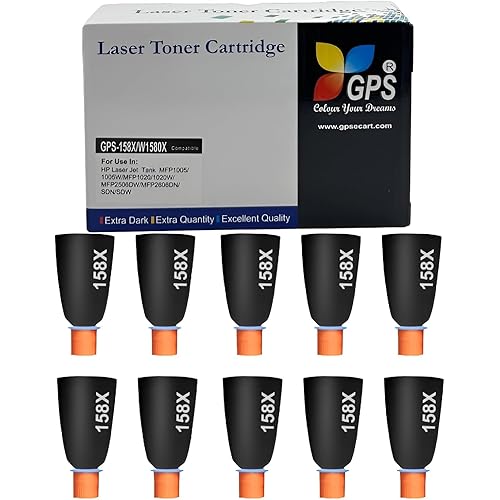 GPS 158X Toner Cartridge, Compatible with HP LJ Tank 1005w, 1020w, MFP 2606sdw, 1020, 1005, 2605sdw, 1604w, 1602, 2602, 2603, 2604, 2606 Series, Print 5000 Pages (158X- Pack of 10)