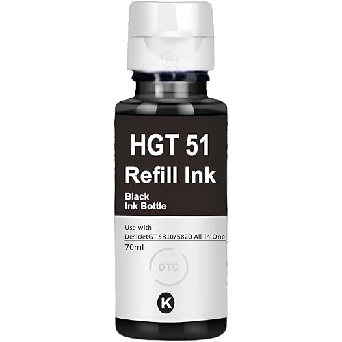 GT51 Black Refill Dye Ink for HP 115, 310, 315, 316, 319, 410, 415, 419, 455, 500, 515, 516, 530, 589, 615, 720, 750, 790, 670, GT 5810, GT 5811, GT 5820 Printer (1pcs Black)