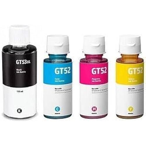 5052 reviews for GT53 XL Black Ink Bottle (135ml) & GT52 Cyan, Magenta, Yellow Ink Bottles (70ml Each) Combo Pack | High Yield Ink Refill for HP Ink Tank Printers (gt53xl st)