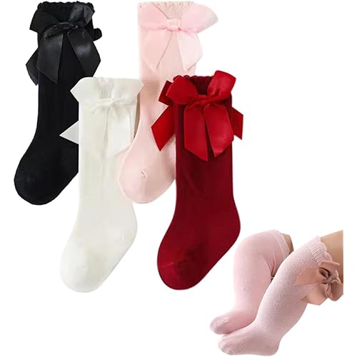 455101 reviews for heartbury Cute and Colorful Pure Cotton Knee High Socks With Bow Princess Socks For Baby Girls (Pack of 4Pairs)