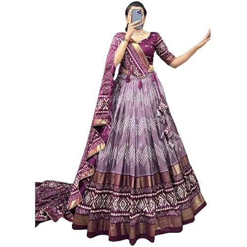 HEM SELLES Women’s Tussar Silk With Patola Print And Foil Work Lehenga choli
