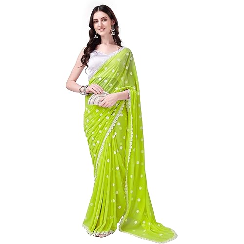 HESVI Women’s Georgette Saree with Unstitched Blouse Piece and Hand-Embroidered Gota Work Lucknowi Chikankari