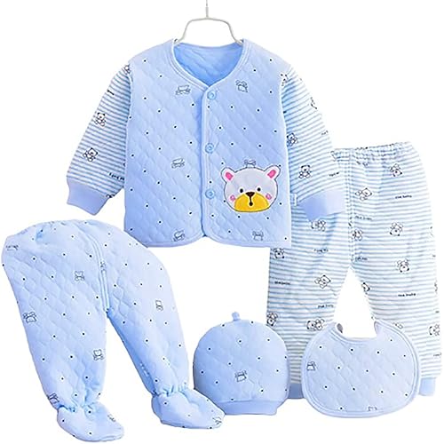 HIKIPO Presents New Born Baby Winter Wear Keep Warm Baby Clothes 5Pcs Sets Cotton Baby Boys Girls Unisex Baby Fleece/Falalen or Flannel Suit Infant Clothes First Gift