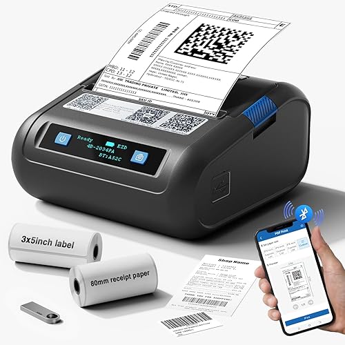 3 reviews for HIROBOT 2025 Newest 3Inch Bluetooth Thermal Label Printer+Receipt Printer(2in1), 80mm Receipt & 3Inch Label Printer, Wireless Print Various Label(Adjustable Size), Support Android/iPhone/Windows/Mac
