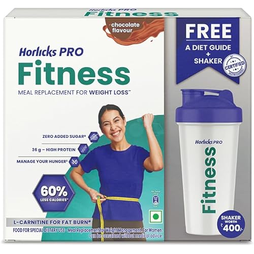 48590 reviews for Horlicks PRO Fitness Chocolate 400g BIB, A Meal Replacement for Weight Loss with 60% Less Calories, L-carnitine for Fat Burn, High Protein & Fiber- No Added Sugar with a Free Shaker