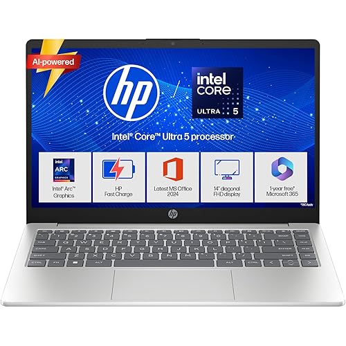 HP 14, Intel Core Ultra 5 125H (16GB DDR5, 512GB SSD), Micro-Edge, Anti-Glare, FHD, 14”/35.6cm, Win11, M365* Office24, Silver, 1.4kg, ep1150TU, FHD Camera, Backlit Laptop