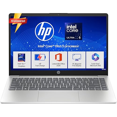 1051 reviews for HP 14, Intel Core Ultra 5 125H (24GB DDR5, 1TB SSD), Micro-Edge, Anti-Glare, FHD, 14”/35.6cm, Win11, M365* Office24, Silver, 1.4kg, ep1180TU, FHD Camera, Backlit Laptop