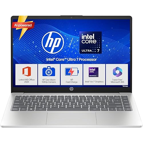 3556 reviews for HP 14, Intel Core Ultra 7 155H (24GB DDR5, 1TB SSD), Micro-Edge, Anti-Glare, FHD, 14”/35.6cm, Win11, M365* Office24, Silver, 1.4kg, ep1181TU, FHD Camera, Backlit Laptop