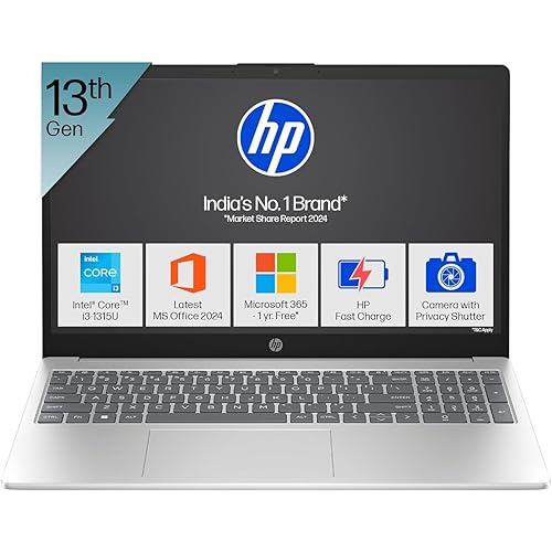 4152178 reviews for HP 15, 13th Gen Intel Core i3-1315U Laptop (8GB DDR4,512GB SSD) Anti-Glare, Micro-Edge,15.6”/39.6cm, FHD, Win11,M365 Basic(1yr),Office Home24, Silver,1.59kg, FHD Camera w/Privacy Shutter, fd0569TU
