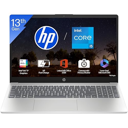 385194 reviews for HP 15, 13th Gen Intel Core i5-1334U (16GB DDR4, 512GB SSD) Anti-Glare, Micro-Edge, 15.6”/39.6cm, FHD, Win 11, Office 24, Silver, 1.59kg, fd0467tu, Iris Xe Graphics, FHD Camera, Backlit KB Laptop