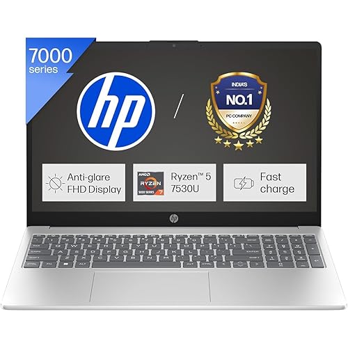 4257 reviews for HP 15, Ryzen 5 7530U Laptop (8GB DDR4,512GB SSD) Anti-Glare,15.6”/39.6cm, FHD, Win11, M365 Basic(1yr),Office Home24, Silver,1.59kg, Radeon Graphics, Camera w/Privacy Shutter, fc0388AU