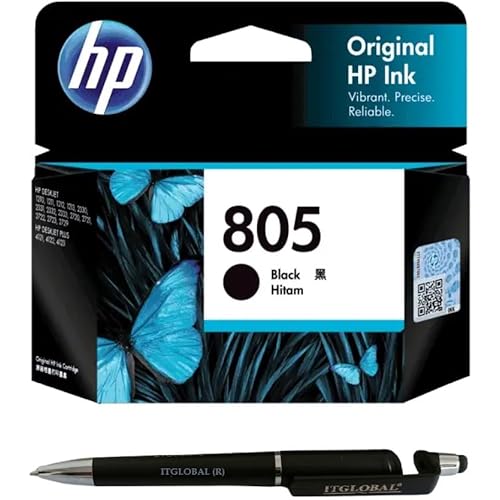 HP 805 Ink Cartridge (Black) with 3in1 Multi-Function Mobile Phone Stand, Stylus Pen, Anti-Metal Texture Rotating Ballpoint Pen (Very Colors)