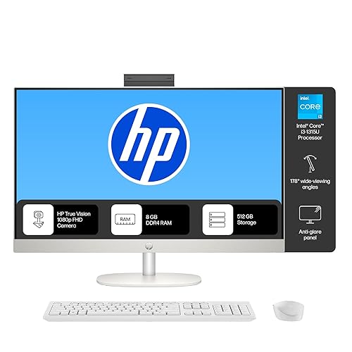 HP AIO, 13th Gen Intel Core i3-1315U,(8GB DDR4,512GB SSD) 300 nits, Anti-Glare, 23.8inch(60.5cm) FHD, Win11, M365, Office24, Shell White, 5.27kg, FHD IR tilt Camera w/Privacy Shutter, 24-cr0901in