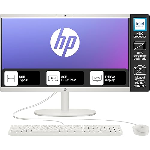 405203 reviews for HP All-in-One, Intel N200,21.45” (54.5 cm), FHD, 8GB DDR5, 512GB SSD, Intel UHD Graphics, 720P HD Camera W/Privacy Shutter, Dual Speakers (Win11, White, 4.17 Kg) Dg0154in