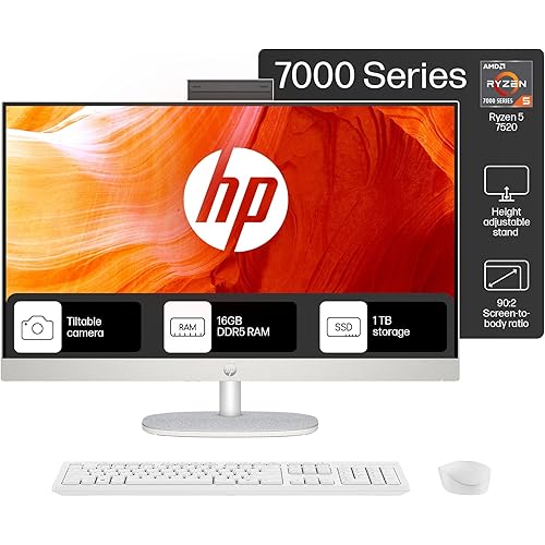 36537 reviews for HP All-in-One PC Ryzen 5 7520U 27-inch(68.6cm) FHD IPS Display, 16GB LPDDR5, 1TB SSD, AMD Radeon Graphics, Wireless Keyboard and mouse combo, FHD Camera, (Win 11, MSO, Shell White, 6.72Kg) 27-cr0445in