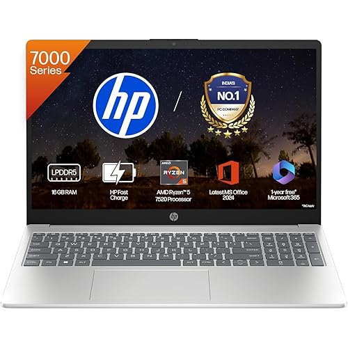HP 15 Laptop, AMD Ryzen 5 7520U (16GB DDR5,512GB SSD) Win11,M365 Basic(1yr)*Office Home24, Anti-Glare,15.6”/39.6cm,FHD,Backlit KB,FHD Camera w/Privacy Shutter,Radeon Graphics, Silver,1.59kg FC0690AU