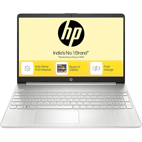 HP Laptop 15s, AMD Ryzen 3 5300U, 15.6-inch (39.6 cm), FHD, 8GB DDR4, 512GB SSD, AMD Radeon Graphics, Thin & Light, Dual Speakers (Win 11, MSO 2019, Silver, 1.69 kg), eq2143AU/eq2212au