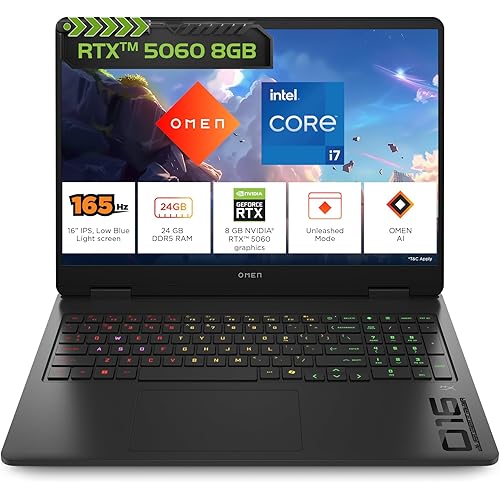 42531 reviews for HP Omen, 14th Gen Intel Core i7-14650HX, 8GB RTX 5060, 24GB DDR5(Upgradeable) 1TB SSD, 165Hz, 2k WUXGA, 3ms, 400 nits, 16”/40.6cm, Win11, M365* Office24, Black, 2.43kg, am0239TX, RGB Gaming Laptop