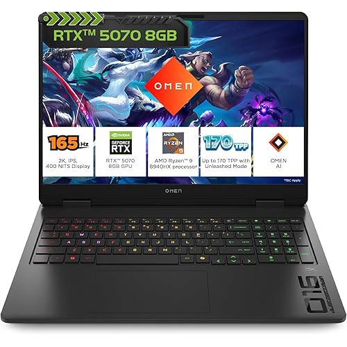4051 reviews for HP Omen, AMD Ryzen 9 8940HX, 8GB RTX 5070, 24GB DDR5(Upgradeable) 1TB SSD, 165Hz, 2k WUXGA, 3ms, 400 nits, 16”/40.6cm, Win11, M365* Office24, Black, 2.44kg, ap0182AX, RGB, AI Gaming Laptop