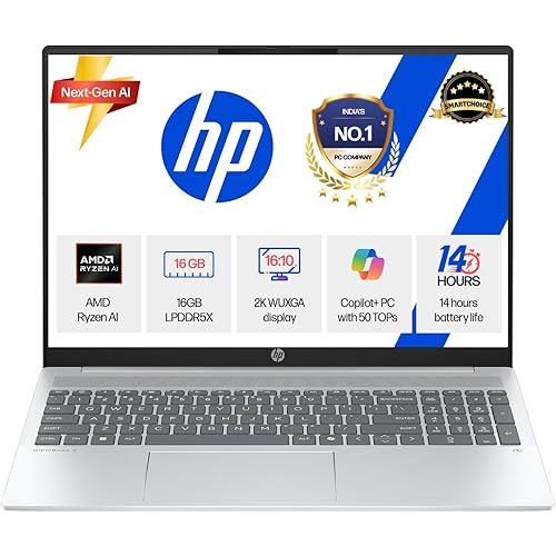 38513 reviews for HP OmniBook 5 (Previously Pavilion) 50 TOPS, AMD Ryzen AI 7 350 (16GB LPDDR5X, 512GB SSD) WUXGA, 2K,IPS, 16”/40.6cm, Touchscreen, Win11, Office24, Silver, 1.8kg, ag1048au, Next-Gen AI Copilot+ Laptop