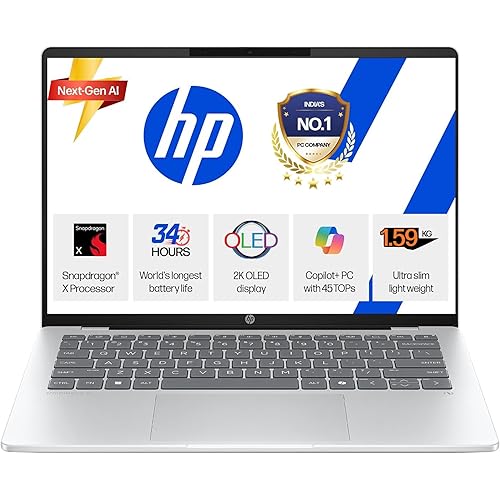 405105 reviews for HP Omnibook 5 OLED, Snapdragon X Processor (16GB LPDDR5x,1TB SSD) 2K OLED, Micro-Edge, 16”/40.6cm, Win11, M365*Office24, Glacier Silver, 1.59kg, fb0001QU, FHD Camera, Backlit, Next-Gen AI Laptop