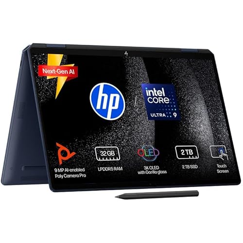 HP Omnibook Ultra Flip (Previously Spectre), Intel Core Ultra 9 288V (32GB LPDDR5x, 2TB SSD), 3K, OLED, 120 Hz, 14”/35.6cm, Win11, M365* Office24, Blue, 1.34kg, fh0369tu, 9MP Camera, Backlit Laptop