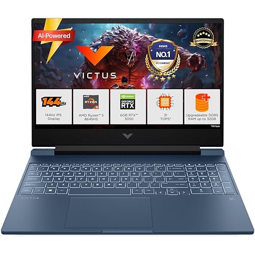 37547 reviews for HP Smartchoice Victus, AMD Ryzen 5 8645HS, 6GB RTX 3050, 31 TOPS, Upgrade (Upto 32GB) 16GB DDR5, 512GB SSD, FHD, 144Hz,IPS, 15.6″/39.6cm, Win11, M365* Office24, Blue, 2.3kg, fb3009AX, AI Gaming Laptop