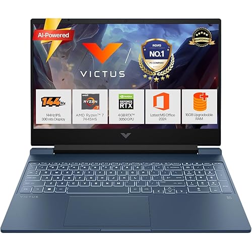 385232 reviews for HP Smartchoice Victus, AMD Ryzen 7 7445HS, 6GB RTX 3050, 16GB DDR5(Upgradeable) 512GB SSD, FHD, 144Hz, 300 nits, 15.6”/39.6cm, Win 11, M365* Office24, Blue, 2.29kg, fb3134AX/3120ax, Gaming Laptop