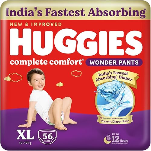 Huggies Complete Comfort Wonder Pants | Pant Style Baby Diapers Extra Large Size, 56 Count | India’s Fastest Absorbing Diaper, Prevents Diaper Rash, Ideal for 12 to 17 Kgs