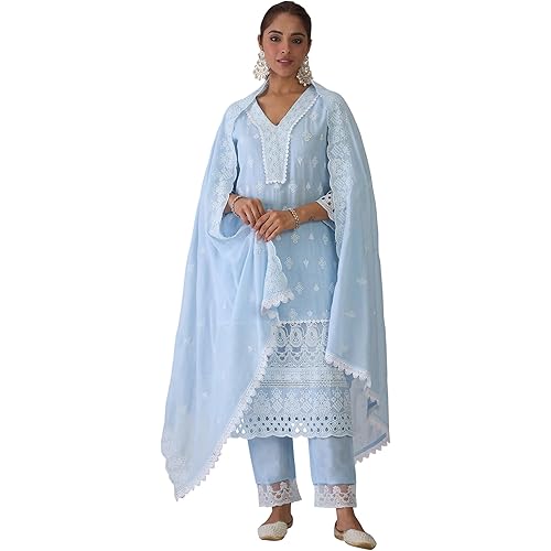 8 reviews for INDO ERA Women’s Embroidered Pure Cotton Kurta Pant With Dupatta Set
