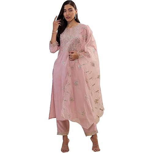 INDO ERA Women’s Embroidered Silk Blend Straight Kurta Pant With Dupatta Set (Kh9Bp6009)