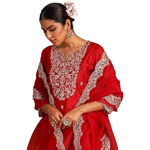 - Color: Red || Top Fabric: Viscose || Bottom Fabric: Cotton Blend || Dupatta Fabric: Organza