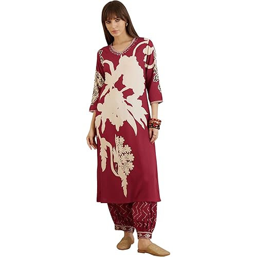 INDO ERA Women’s Printed Viscose Rayon Calf Length A-Line Kurta & Salwar Set (SHTUR6140)