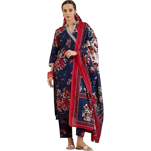11 reviews for INDO ERA Women’s Silk Blend Floral Embroidered Angrakha Kurta Palazzo With Dupatta Set