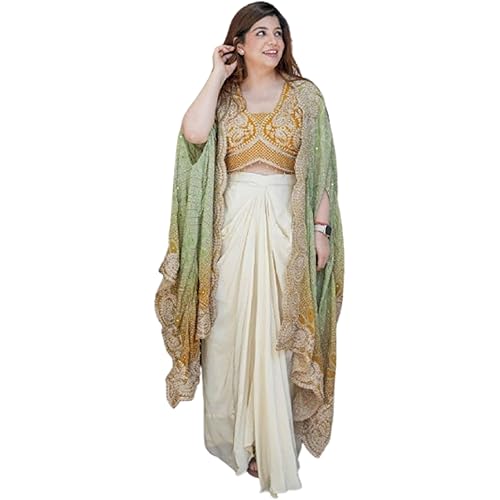 4552 reviews for infabzon Ready To Wear Indo-Western Draped Set For Womens And Girls Chinon Silk Fabric With Multi Thread Embroidery Cording Fully Stitched Dhoti And Blouse With Shrug