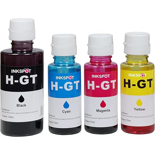 - 【Package】: Black Ink GT51, 135mL, Cyan Ink GT52, 70mL, Magenta Ink GT52, 70mL, Yellow Ink GT52, 70ml (total 345mL of color ink).
