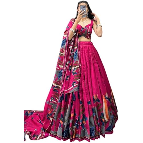 inox fashion Women’s Trending Designeer Tussar Silk Lehenga Choli Print with Foil Work With Unstitched Blouse Patola Print Adorned with Foil Work For Navrati || Wedding