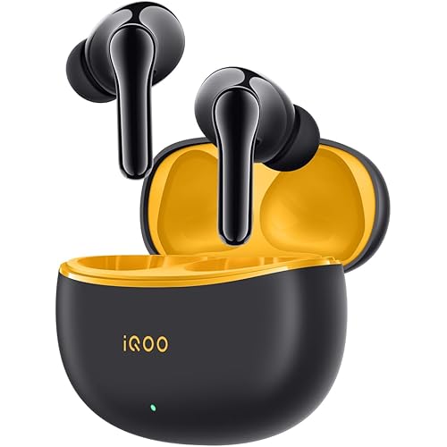 iQOO TWS 1e in-Ear Earbuds with Mic, Upto 30dB Active Noise Cancellation, Fast Charging which Takes 10 mins for 3 Hours Playtime, with Upto 42 hrs Playback time (Flame Yellow)