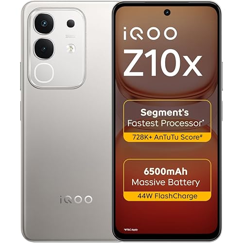 4353955 reviews for iQOO Z10x 5G (Titanium, 8GB RAM, 256GB Storage) | 6500 mAh Large Capacity Battery | Dimensity 7300 Processor | Military-Grade Durability