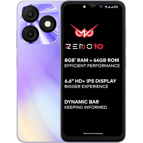 itel ZENO 10|6.6″ HD+ Display with Dynamic Bar| 3GB RAM +64GB ROM, Upto 8GB RAM with Memory Fusion|Octacore Processor|8MP AI Dual Rear Cam|5000 mAh Battery| Opal Purple