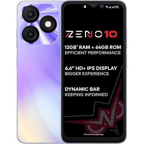 itel ZENO 10|6.6″ HD+ Display with Dynamic Bar| 4GB RAM + 64GB ROM, Upto 12GB RAM with Memory Fusion|Octacore Processor|8MP AI Dual Rear Cam|5000 mAh Battery | Opal Purple