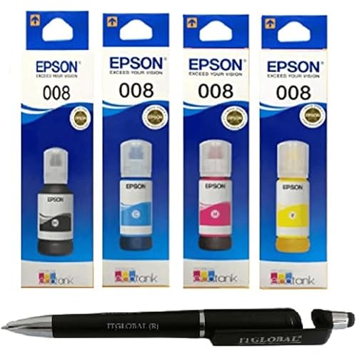 ITGlobal 3in1 Multi-Function Anti-Metal Texture Rotating Ballpoint Pen | 008 B/C/Y/M Ink Bottle (Set of 4) T008 T-008 C13T06G100 200 300 400 OG for Epson Selected Printer | Value Pack