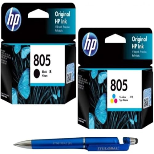 ITGlobal ® Value Pack Combo OG 805 Black & Colour (Set of 2) Ink Cartridge for HP Selected Printer With 3in1 Multi-Function Creative Mobile Phone Stand, Stylus Pen, Ballpoint Pen (Very Colors) 805 Ink