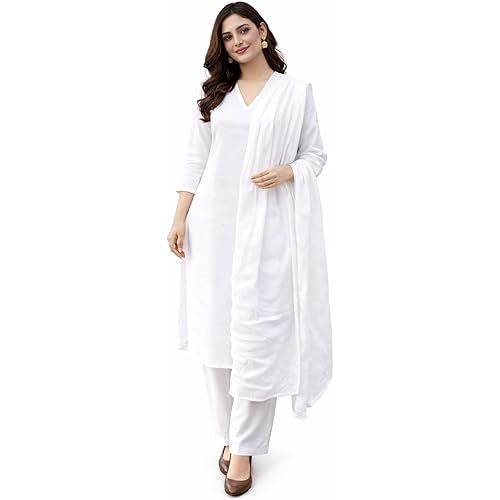 3854 reviews for JAIPUR HAND BLOCK Women’s Pure Cotton White plain Salwar Suit | solid Coord Set with Duppatta