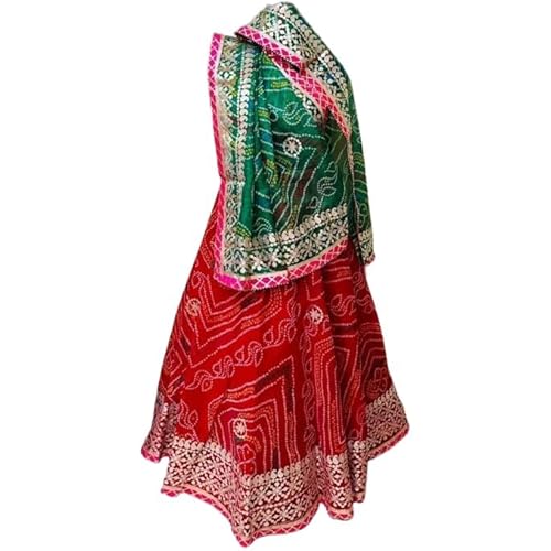 JAIPURI GOTTA PATTI SAREES Womens/Girls Traditional Bandhani Bandej Kota Doria Ready to Wear Lehenga & Dupatta With Unstitched Blouse