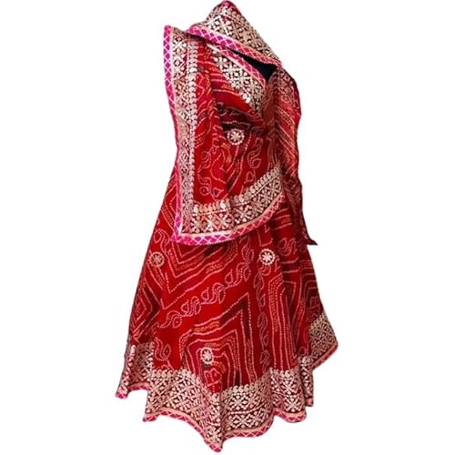 JAIPURI GOTTA PATTI SAREES Womens/Girls Traditional Bandhani Bandej Kota Doria Ready to Wear Lehenga & Dupatta With Unstitched Blouse