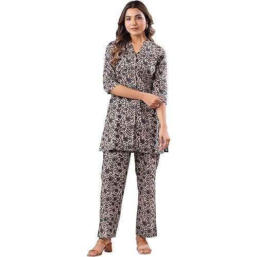 Tunic Color : Beige | Pant Color : Beige Tunic Fabric : Cotton | Pant Fabric : Cotton Tunic Work : Floral | Pant Work : Floral Size Details : Tunic Length : 34 Inches | Pant Length : 38 Inches Package Contains : 1 Top :: 1 Bottom