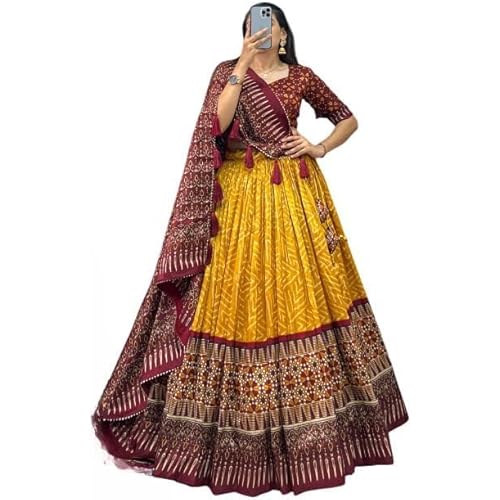 15 reviews for Jay Varudi Creation Lehenga Choli Women’s Trending Designeer Tussar Silk Lehenga Choli Print with Foil Work With Unstitched Blouse Patola Print Adorned with Foil Work For Navrati & Wedding